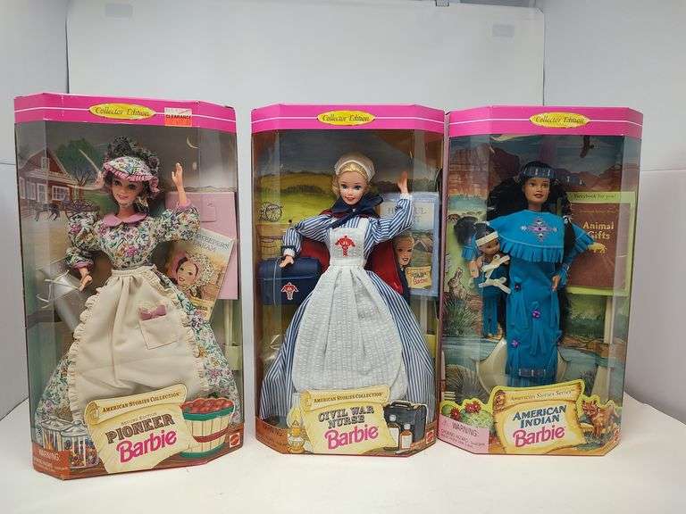 Second Edition Pioneer Barbie, Civil War Nurse Barbie, American Indian Barbie