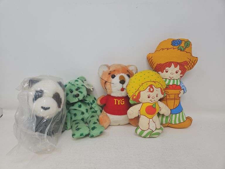 Gund panda, Green bear beanie, Tyg shirt tales, Strawberry Shortcake