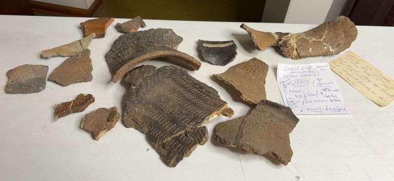 Includes handwritten note indicating Odien Island, and Hicksville OH, Defiance County origin. 1400-1600 AD Ancient Clay Pottery Jar Rims.