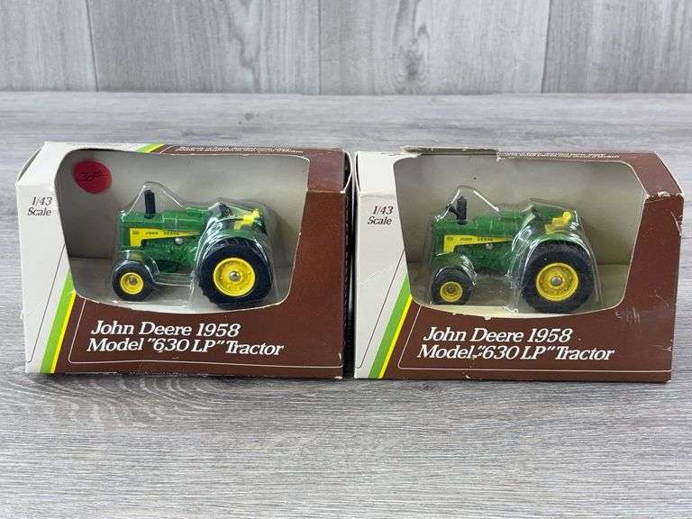 LOT 67 - 2 John Deere 1958 Model “630 LP” Tractors, 1/43, Ertl, 1 Has Bent Stack