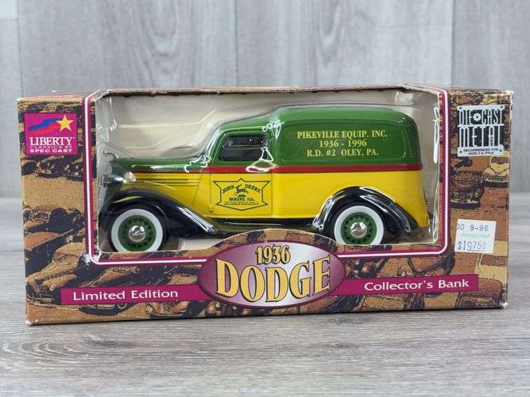 LOT 80 - 1936 Dodge John Deere Pikeville Equipment, Inc. Panel Truck Collector’s Bank, 6 1/2” Long, Liberty Classics, SpecCast